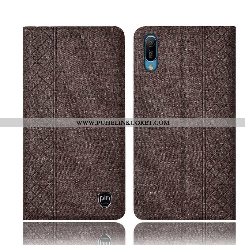 Kuoret, Kotelo Huawei Y6 2020 Nahkakuori Pellava Kuori All Inclusive Ruskea