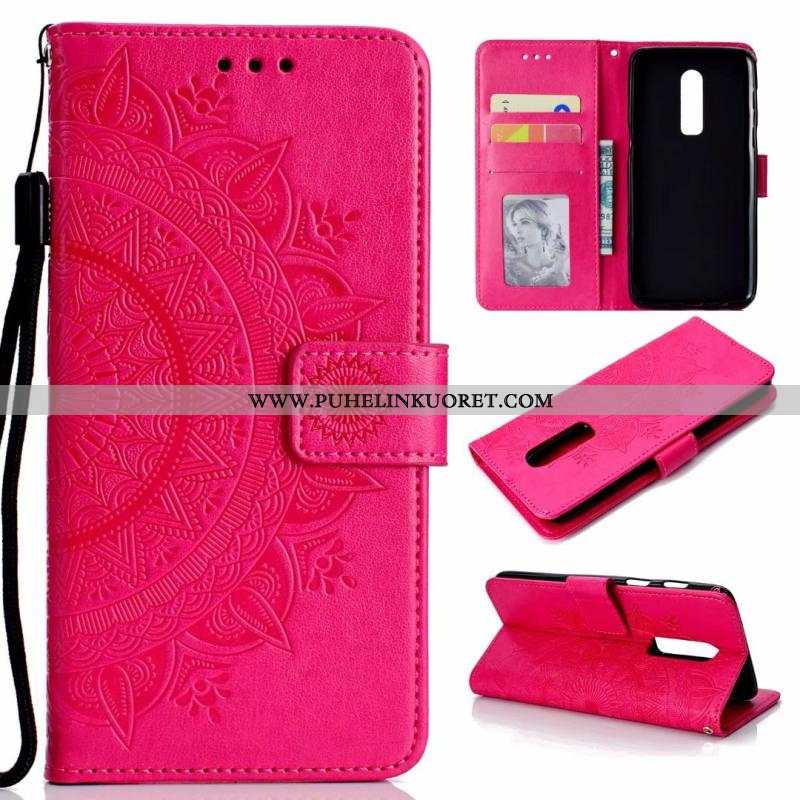 Kuoret, Kotelo Oneplus 6 Nahka Kukkakuvio Suuntaus Liiketoiminta Puhelimen Punainen