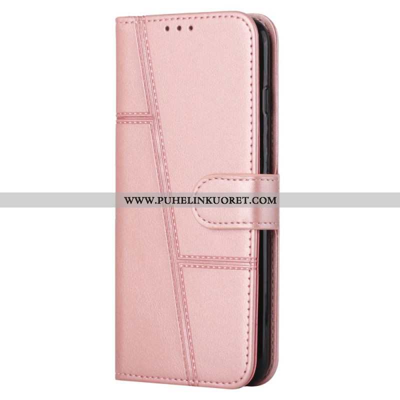 Flip Case Samsung Galaxy S22 5G Suojaketju Kuori Strappy Geo Leather Effect