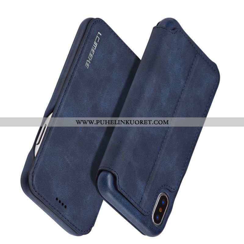 Kuori, Kuoret iPhone Xs Valo Suojaus Kotelo Kuori Nahkakuori Tummansiniset