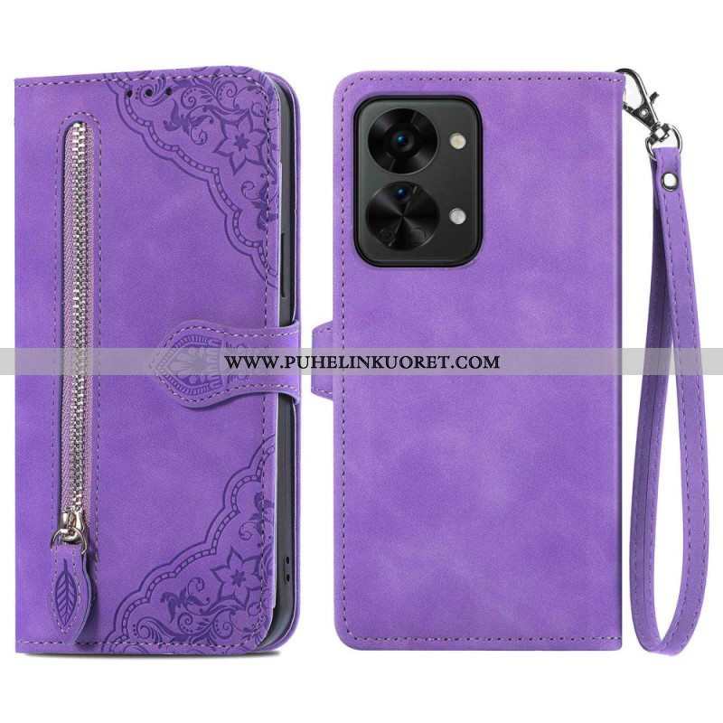 Nahkakotelo OnePlus Nord 2T 5G Suojaketju Kuori Korttikotelo Ja Kukkaro Kaulanauhalla