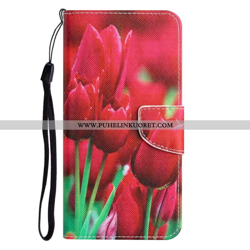 Nahkakotelo Samsung Galaxy A54 5G Suojaketju Kuori Strap Kukat