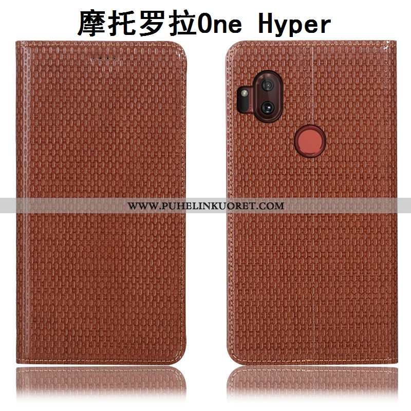 Kotelo, Kuori Motorola One Hyper Suojaus Aito Nahka Kotelo All Inclusive Puhelimen Ruskea