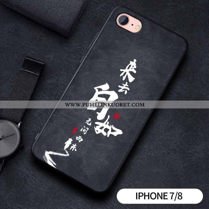 Kuoret, Kotelo iPhone 7 Suojaus Kohokuviointi Silikoni Yksinkertainen Musta Mustat