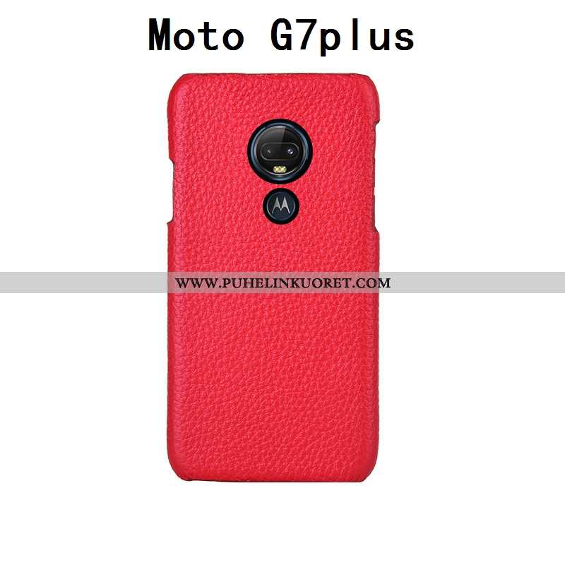 Kuori, Kuoret Moto G7 Plus Suojaus Nahkakuori All Inclusive Kotelo Punainen