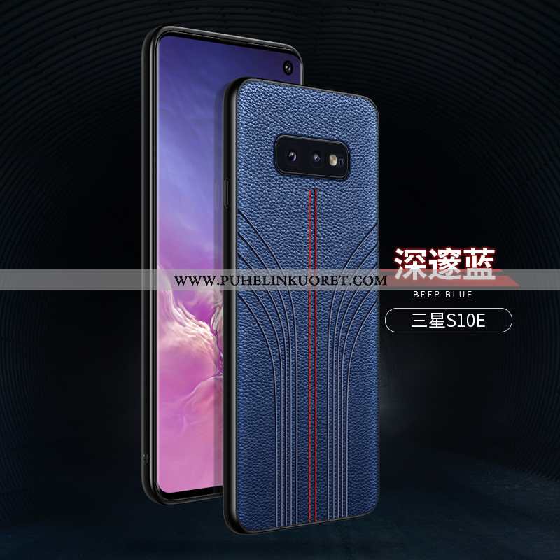 Kuoret, Kotelo Samsung Galaxy S10e Nahkakuori Aito Nahka Sininen Simpukka Krokotiili